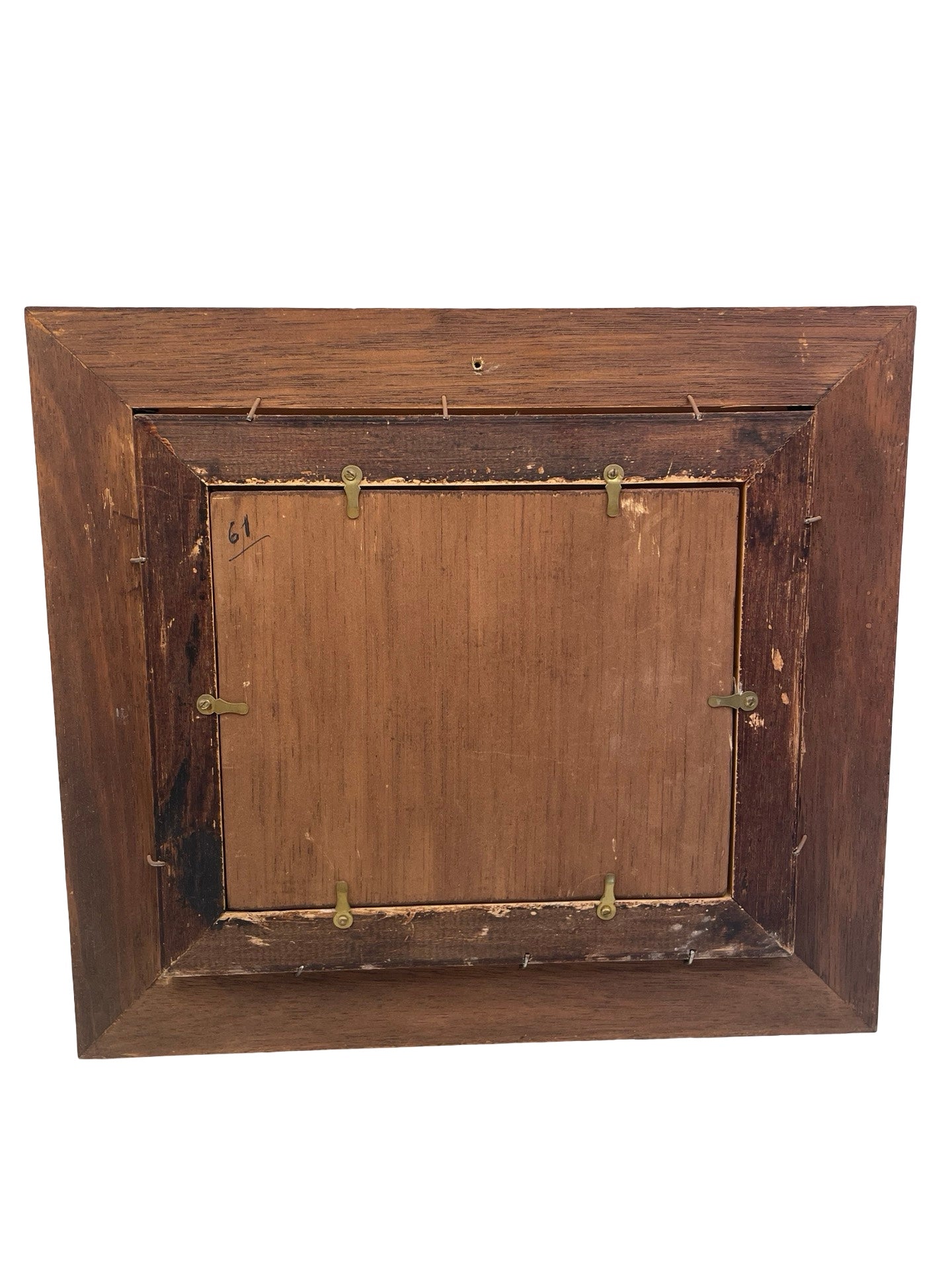 La plaque est en excellent état. Cadre en bois massif d'époque avec légère patine, cohérente avec son âge.